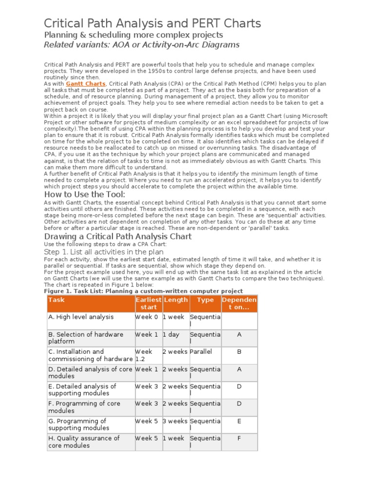 Jun 13, 2020 · it is commonly used in conjunction with the program evaluation and review technique (pert). Critical path is more useful for projects where task length is easy to predict, such as a construction project or a large conference. We have written a post that explains how to elaborate the project network. How is critical path determined? Critical path analyses are presented using circle and arrow diagrams.